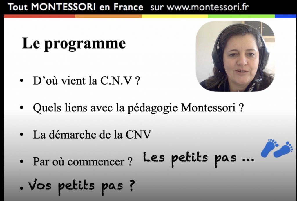 Cette semaine, Caroline avec laquelle je travaille en consulting pédagogique, a fait une intervention sur la CNV (Communication Non Violente) à la demande d’éducateurs Montessori d’une école en Floride.