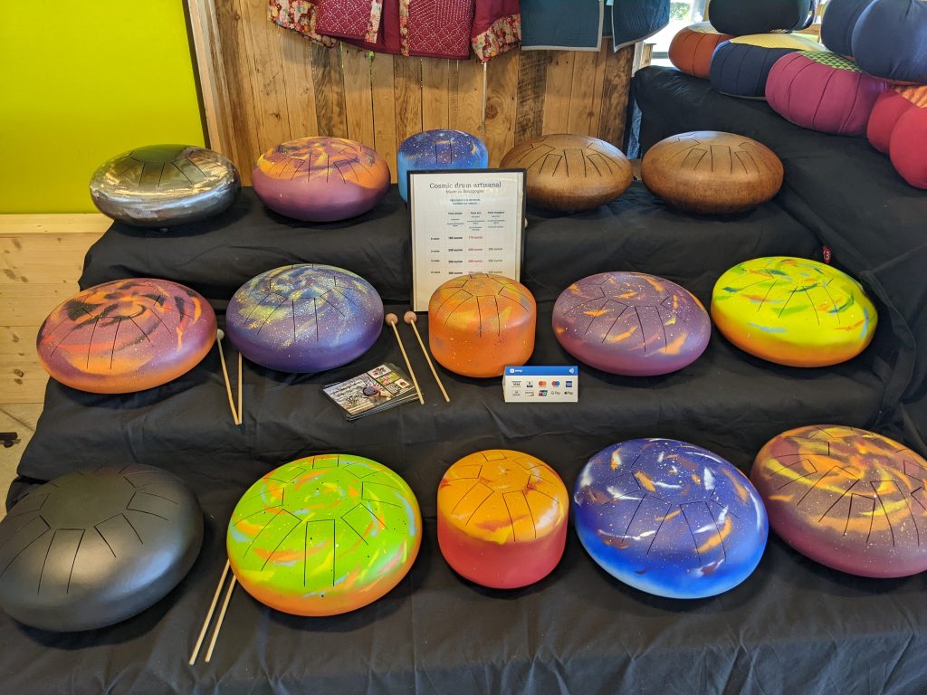 Hier, j’ai pu rencontré un jeune homme plein de talents qui recycle des bonbonnes de gaz en instrument de musique à jouer. C’est beau et c’est doux.